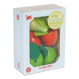 Nyd en dag “på markedet” med denne smukke trækasse fra LE TOY VAN fuld af frugt. Sættet indeholder to røde og to grønne æbler samt to grønne pærer med filtblade. Legetøjet er lavet af bæredygtigt træ, malet med ikke‑giftige vandbaserede farver og passer perfekt i små hænder. Støtter fantasifuld leg, finmotorik og læring om sund kost.
