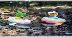 En lille vand-eventyrer, der begejstrer børn fra 2 år. Træk den op et par gange, årerne begynder at rotere, og pelikanen sejler afsted. Efter badet tørres legetøjet blot, så det bevarer sine egenskaber i lang tid.