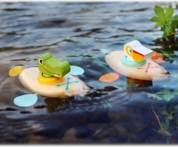 Det træbaserede vandlegetøj er et mere skånsomt alternativ til almindeligt gummilegetøj. Takket være behagelige materialer og afrundede former er det sikkert og ligger godt i selv små hænder.