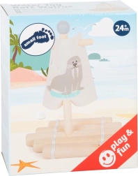 Oplev bølgernes sjov med træflåden fra small foot, som er som skabt til små søfolk. Takket være naturmaterialer, solidt håndværk og et tekstilt sejl med et muntert hvalros-motiv kan børn nyde timers leg ved hvert bad. Legetøjet er velegnet til badekar, balje, pool og rolige naturvand – læg det blot på vandet og lad det flyde.