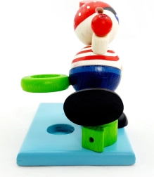 Motivér børn til regelmæssig tandbørstning på en sjov måde. Den træskårne pirat med timeglas og blå sand måler pålideligt de anbefalede 2 minutter, mens den integrerede holder til tandbørste holder badeværelset ryddeligt.