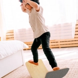 Dette alsidige balancebræt giver sjov træning for både små og store. Den enkle form udvikler motorikken, styrker stabiliserende muskler og lærer kroppen bedre kontrol. Takket være det omhyggeligt slebne træ er det behageligt at røre ved og sikkert i daglig leg.