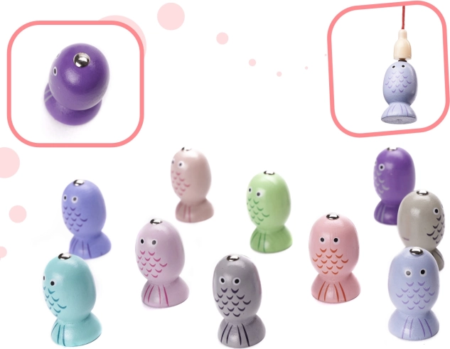 Træfisk og en magnetisk fiskestang gør læring til leg. Børn udvikler koordination, tålmodighed og koncentration og kan sortere fiskene efter farver eller tælle fangsterne.