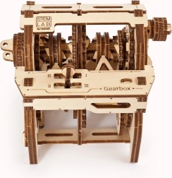 Samlingen af modellen med en firetrins gearkasse afslører mekanikkens funktion, hvor skift af geartrin, bakgear og tomgang demonstreres. Modellen er lavet af krydsfiner og tilbyder interaktiv læring takket være augmented reality via UGEARS-appen. Oplevelsen uddybes med en QR-kode, som du forbinder med din mobiltelefon.