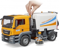 Gør byens gader helt rene med den realistiske model BRUDER MAN TGS. Den tilbyder to roterende og højdejusterbare børster, en bevægelig bundbørste, en bagmonteret sugeslange og en vippebeholder for nem tømning af snavs. Der er også åbningsbare døre, vipbare spejle og kvalitetsudførelse i ABS-plast fremstillet i Tyskland.