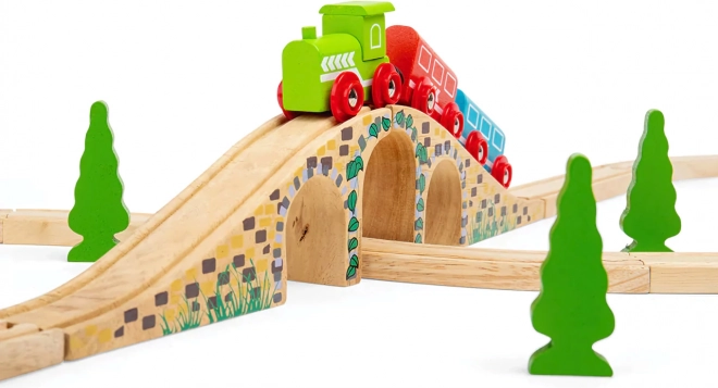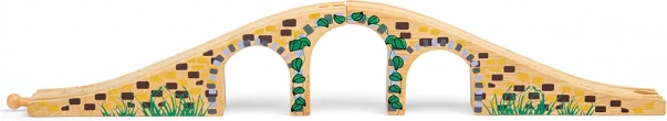 Denne stilfulde trebuen bro er et perfekt supplement til enhver træ-togbane. Takket være de realistiske detaljer i stenmur og den glatte finish giver den din bane niveauforskelle og visuel attraktivitet. Muliggør, at tog kan køre både over og under broen og skaber sjove legescenarier.