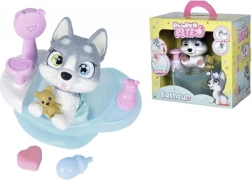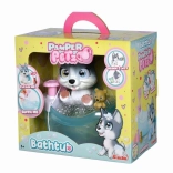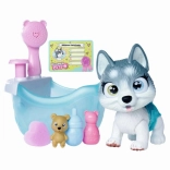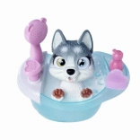 Dyk ned i legens verden med Hvalpe Husky Pamper Petz i badekar. Denne bedårende hundeven tilbyder børn mange timers leg, hvor de kan passe på deres kæledyr, bade dem og pleje dem som et rigtigt dyr.