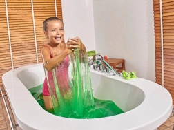 Forvandl almindeligt vand til grøn slim og oplev uforglemmelig sjov i badekarret.