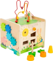 Motorisk kube kanin – træaktivitetsterning med labyrint og xylofon