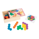 Mosaikspillet i sekskantet form er designet til at træne børns logik og kreative tænkning. Hver del er omhyggeligt fremstillet af træ, hvilket sikrer holdbarhed og langvarig underholdning. Et spil, der både underholder og uddanner.
