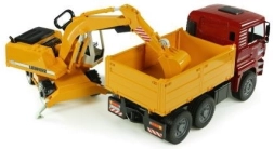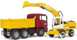 Dette fantastiske byggesæt fra Bruder omfatter en MAN TGA-lastbil med bløde dæk og en praktisk tipkasse. Derudover medfølger en funktionel Liebherr-gravemaskine, der har stabiliserende støtteben, profilerede dæk og et graveaggregat med en 360° drejelig kabine. Produktet er solidt udført i Tyskland af holdbare materialer.