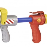 En kraftig dyse og slange sender vandstrålen op til 10 m. Perfekt til udendørs vandkampe og træning af små brandmænd.