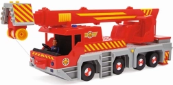 Ryk ud med brandbil med kran 2‑i‑1 BRANDMAND SAM. Det robuste plastkøretøj måler 50 cm i længden, og takket være den aftagelige frontdel giver det to lege i én – kørsel med kabinen og arbejde med kranen.