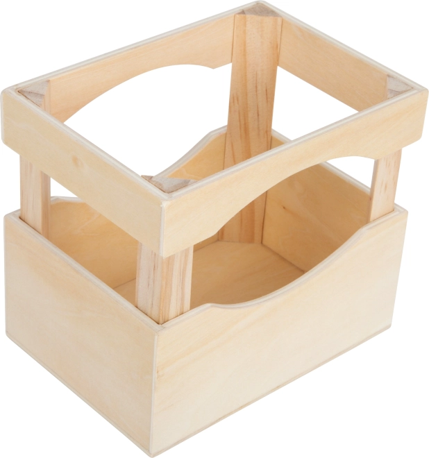 Denne stilfulde trækasse med et sæt på 6 drikkeflasker er et ideelt tilbehør til børnekøkkenet eller salgsboden. Børn øver fantasi, sociale færdigheder og finmotorik, når de serverer “sodavand” og leger butik.