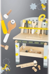 Dette børne arbejdsbænk Miniwob bringer virkelig meget sjov til børneværkstedet. Med sin kompakte størrelse og klassiske design kan den nemt opbevares i mindre rum. Bænken er udstyret med 5 stykker træværktøj og et stort udvalg af tilbehør, der letter fantasifuld leg og praktisk indlæring af færdigheder.