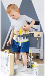 Børne værktøjsbælte Miniwob er fuldstændig tilpasningsdygtigt og muliggør sikker fastgørelse med klik-spænde. Dette legende bælte indeholder: