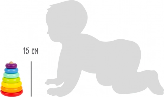 Dette stablingstårn giver børn mulighed for at genkende og sortere farverige ringe efter størrelse og farve. Takket være den afrundede base kan tårnet gynge, hvilket giver ekstra glæde og underholdning under legen. Den robuste trækonstruktion er ideel til langvarig leg, også for de allermindste.
