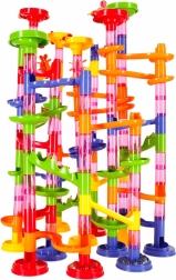 Farverig kuglebane for børn og voksne med 219 XXL-dele tilbyder uendelige byggemuligheder. Byg høje tårne, snoede tunneler og rutsjebaner, og lad kuglerne kapløbe. Støtter kreativitet, rumlig tænkning og finmotorik, perfekt som pædagogisk legetøj og underholdning for hele familien.