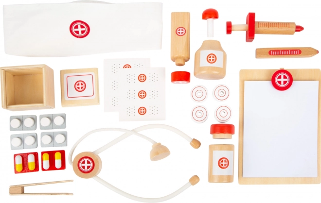 Small Foot lægekuffert til børn er det ideelle valg for små læger, der vil være klar til besøg hos patienterne. Kufferten indeholder alle vigtige medicinske redskaber, som er helt i træ og pakket i klassiske hvid-røde farver.