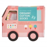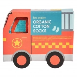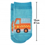 Søde babystrømper i økologisk bomuld til tumlinger giver komfort og et legende udtryk. Vælg mellem glade motiver med køretøjer (bil, brandbil, isbil eller lastbil), og den bløde, ribbede kant sørger for, at strømperne bliver siddende. Et miljøvenligt valg til sart børnehud.
