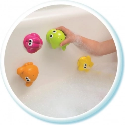 Dyrene er designet med sugekopper, så de nemt kan sættes fast på badekarrets vægge. Sættet er perfekt til at støtte finmotorikken og giver en interaktiv oplevelse. Børn kan prøve forskellige lege og udvikle deres fantasi.