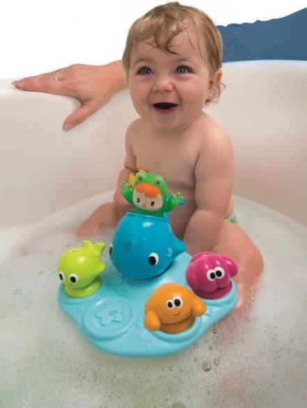 Giv børnene mere glæde ved den daglige badetid med den flydende Cotoons-ø. Denne legesyge ø er ideel til sjov i badekarret og indeholder farverige dyr, der glæder ethvert barn. Favoritten er hvalen, som også fungerer som en lille vandkande.