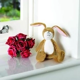 Takket være de sikre materialer er kaninen egnet til børn fra fødslen.