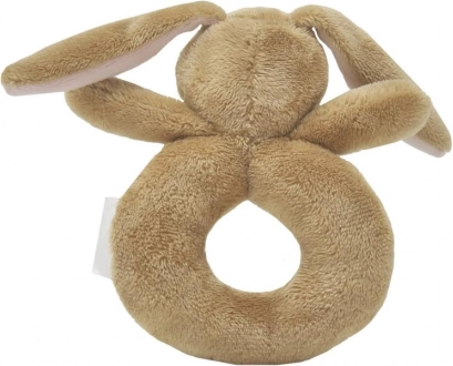Denne yndige kaninrangle inspireret af bogen Gæt hvor højt jeg elsker dig bringer glæde og underholdning til de allermindste. Fremstillet af blød plyds med broderet ansigt og teksten I love you, er den en perfekt gave til at stimulere barnets sanser.