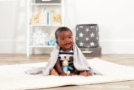 Den praktiske gaveæske med illustrationer gør det til et perfekt valg til fejringer og den første babystartpakke. Tæppet kan nemt vaskes i maskine, materialerne er skånsomme mod sart børnehud og er velegnede til nyfødte.