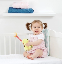 Nem fastgørelse til seng eller autostol gør, at legetøjet altid er lige ved hånden og bidrager til underholdning både på farten og derhjemme.