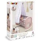 Børnevuggen Smoby Baby Nurse med stofbaldakin giver børn en realistisk forældrerolleleg. Takket være den afrundede vuggebund kan små plejere blidt vugge deres dukke i søvn, mens den bløde baldakin skaber et hyggeligt miljø.