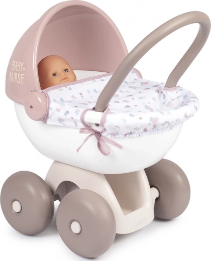 Dyb barnevogn til dukker fra Baby Nurse-serien specielt designet til de mindste. Lavet af kvalitetsplast, der er nem at rengøre. Stofbetrækket er aftageligt og vaskbart. Ekstremt stabil konstruktion, som takket være de fire hjul er meget let at manøvrere.