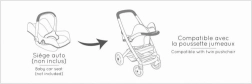 Med en enkel afmontering af liggedelen omdannes vognen på et øjeblik. Den øverste del kan bruges som kurv/bærestol til dukken på farten.