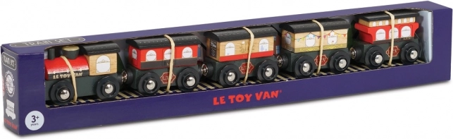 Det stilfulde trætog ROYAL EXPRESS fra Le Toy Van glæder både børn og forældre. Det indeholder en lokomotiv og fem vogne med magnetisk sammenkobling, er lavet af bæredygtigt træ og malet med ikke‑giftige vandbaserede farver. Understøtter finmotorik, fantasifuld leg og er kompatibelt med de fleste trætogbaner.