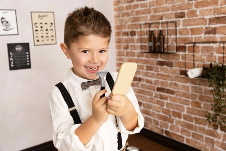 Spejl, saks, kam, børste, barbermaskine og andet tilbehør giver timevis af sikker, kreativ underholdning for børn fra 3 år.