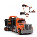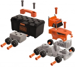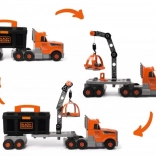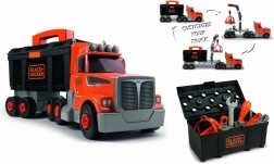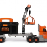 Stor trækker 3i1 Black+Decker fra den franske producent Smoby giver børn masser af sjov og udviklingsmuligheder. Den kombinerer funktionerne af en lastbil med en aftagelig værktøjskasse og en samlbar kran.