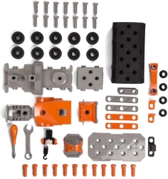 - Suppleret med forskellige værktøjer såsom skruetrækker, hjul, skruer, møtrikker og nøgle.