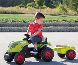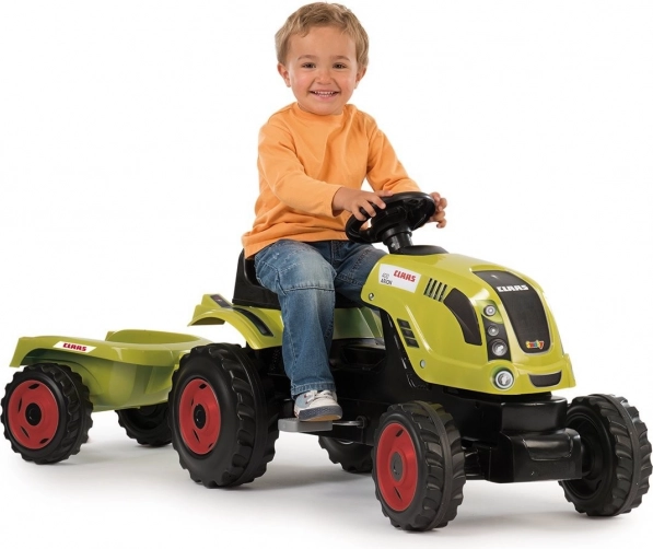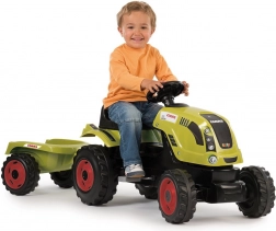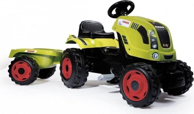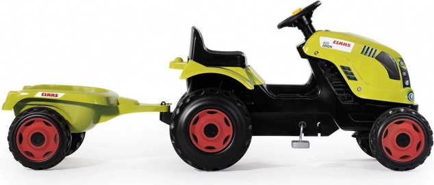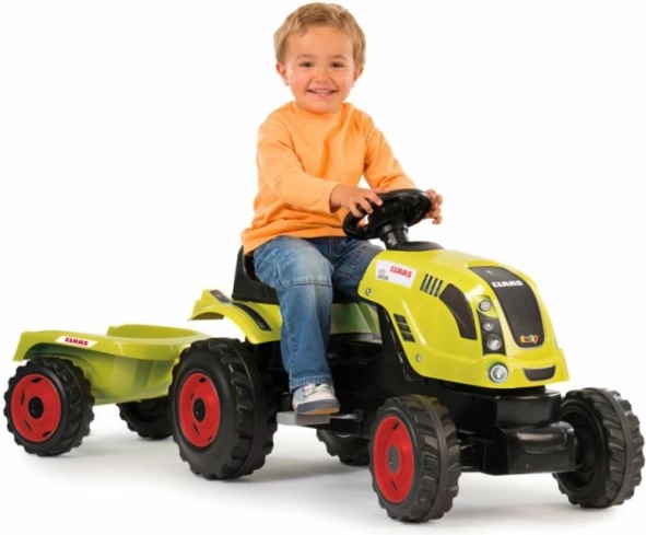 Sæt dig bag rattet på den stilfulde trampetraktor CLAAS og kør ud på gårdspladsen, i haven eller på legepladsen. Realistiske detaljer som åbnbar motorhjelm og et funktionelt horn stimulerer fantasien og den virkelighedsnære leg. Takket være det justerbare sæde vokser traktoren med barnet og sikrer en komfortabel siddestilling.