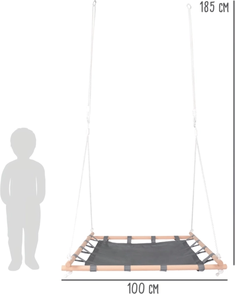 Nyd sjov og afslapning med den firkantede gynge Small Foot! Denne gynge i moderne design med en naturlig træramme er ideel både til haven og indendørs. Den tilbyder masser af plads og komfort til flere børn, med holdbare materialer, der er lette at rengøre.