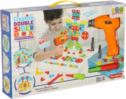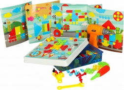 Sjovt lærende byggesæt til små gør-det-selv-børn med elektrisk legetøjsboremaskine, skruer og mosaikplade. Børn træner deres finmotorik, kreativitet og tekniske tænkning ved at samle farverige mønstre og egne konstruktioner. Den praktiske kuffert gør det nemt at tage med, og den omfattende pakke med 261 dele sikrer timevis af leg.