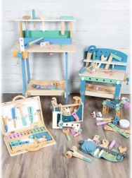 Arbejdet med nøgle og skruetrækker træner greb, hånd-øje-koordination og tålmodighed. En ideel aktivitet for små gør-det-selv-børn, der vil “arbejde rigtigt” med værktøj.