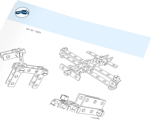 Perforerede lister, skruer, møtrikker, hjul og værktøj gør det muligt for børn at skabe køretøjer og simple konstruktioner. Montering og demontering understøtter kreativitet og logisk tænkning.