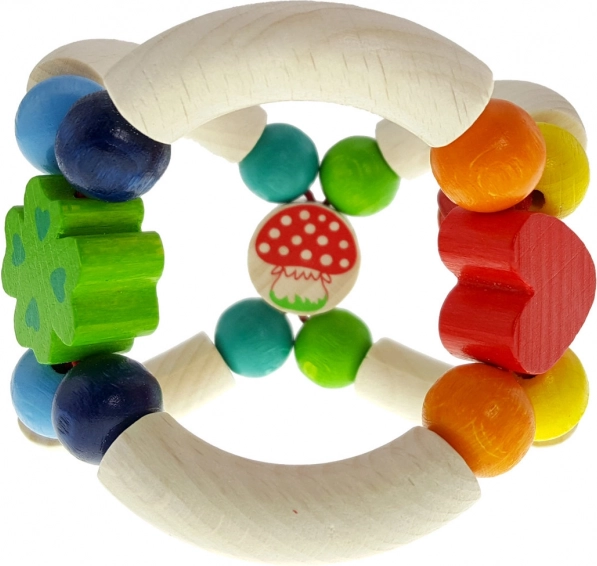 En sød træ-rangle formet som en fluesvamp fra mærket Hess glæder de mindste helt fra fødslen. Takket være den behagelige form ligger den godt i små hænder og stimulerer fantasien, udvikler finmotorikken og koordinationsevnerne. Den integrerede klokke udsender en mild lyd, som fanger barnets opmærksomhed og virker beroligende.
