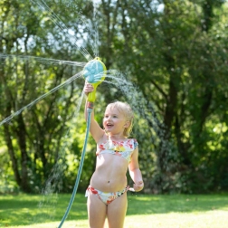 Børn elsker at tilbringe tid udendørs, og denne havevandspreder giver dem timevis af underholdning. Den kan placeres frit på jorden, holdes i hånden eller fastgøres til et legehus. Sprederen tilbyder to vand-spraytilstande – konstant og roterende, som kan skiftes med en specialknap.