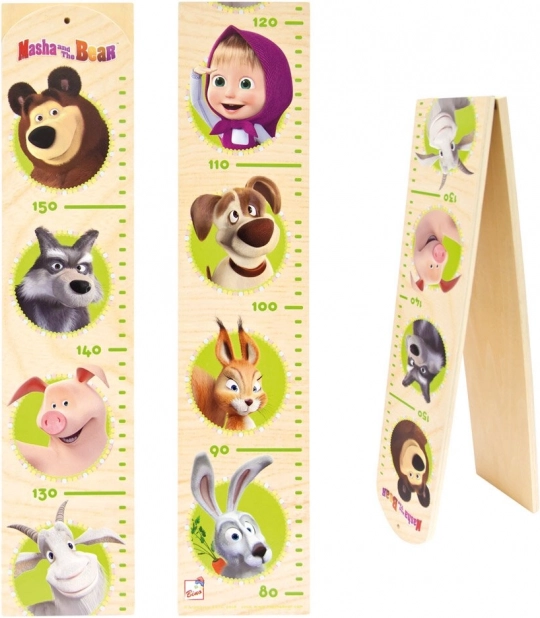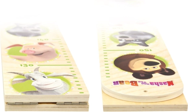 Træ-vækstmåler i naturfarve med print af søde dyr og heltene fra eventyret Masha og Bjørnen forvandler højde-målingen til en sjov daglig rutine. Med den trykte centimeterskala kan du nemt følge hver centimeter fra 80 til 160 cm.
