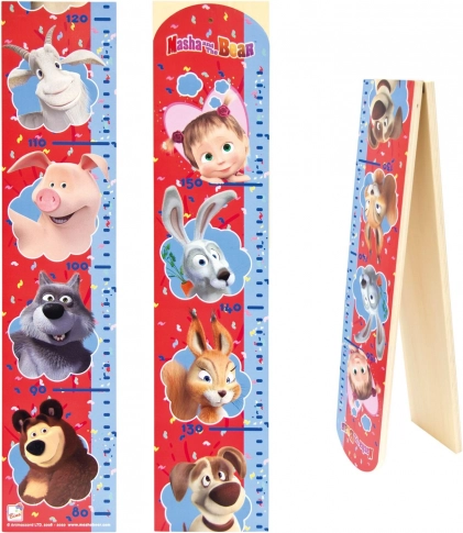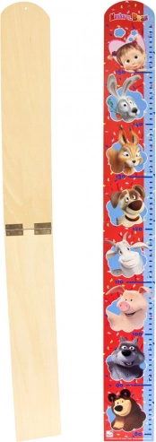 Trævækstmåler til børn Bino Masha og Bjørnen i rød-blå. Trykt skala 80–160 cm, nem ophængning, perfekt som dekoration til børneværelset.