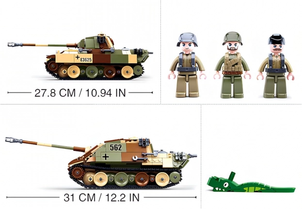 Dette detaljerede byggesæt kombinerer et realistisk udseende af militærteknik med legende konstruktion. Takket være 2-i-1-udgaven kan du vælge mellem to tankvarianter i camouflage-design og dermed udvide dine legescenarier. Sættet indeholder 3 minifigurer, inklusiv en skytte med bazooka, for endnu mere dynamiske historier.
