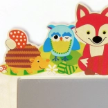 Stilfuld børneknagerække med spejl med motiv af skovdyr, som pynter både værelse og entré. Den tilbyder fem praktiske kroge til jakker og tilbehør samt et sikkert spejl af ubrudt plexiglas. Fremstillet af ansvarligt indhentet træ og behandlet med miljøvenlige farver.