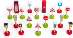 Opdag et legende sæt med 18 trætrafikskilte, der perfekt komplementerer enhver togbane og byscene. Takket være den robuste trækonstruktion og tydelige symboler forstår børn let færdselsreglerne. Sættet er kompatibelt med de fleste trætogbaner på markedet og understøtter udviklingen af børns fantasi og finmotorik. Kvalitetstræ, sikker udførelse og lærende leg i ét.