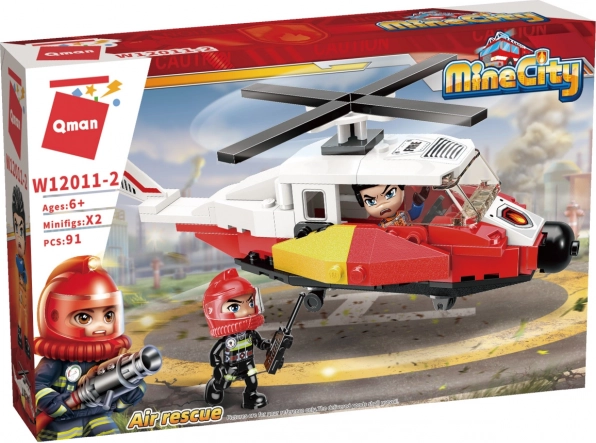 Byg en detaljeret helikopter med roterende rotor og cockpit til piloten – perfekt til actionfyldte brandindsatser og luftmissioner.